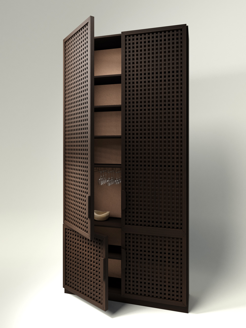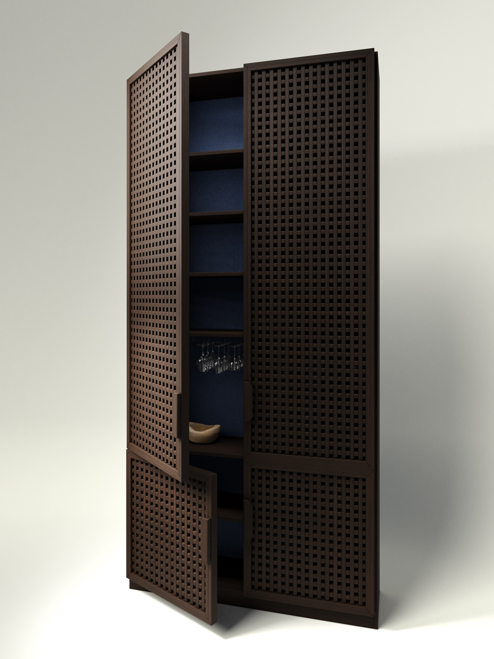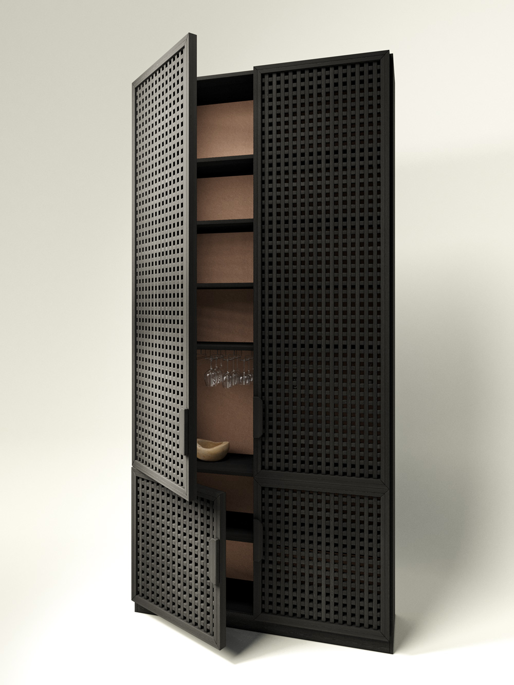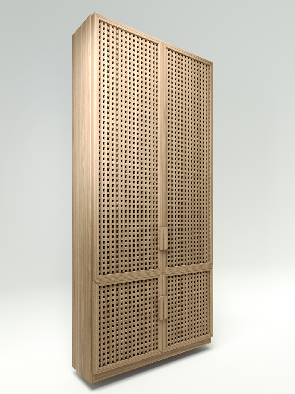 Nothing superfluous. No random items in your home. The Cell Side BUFF wardrobe is designed by us to fill the space with essentials. While working on the design, we aimed to preserve the simplicity and reliability of a classic wardrobe, making it visually light and functional. The Cell fronts from the eponymous collection made of natural ash wood are intricate elements carefully selected and adapted to each other. Each element is meticulously crafted and finished by a master – it seems to breathe, maintaining cleanliness and order with its concise lines.