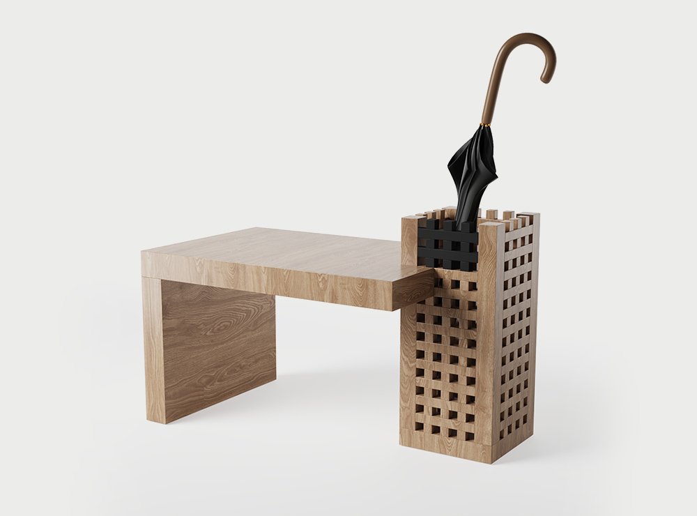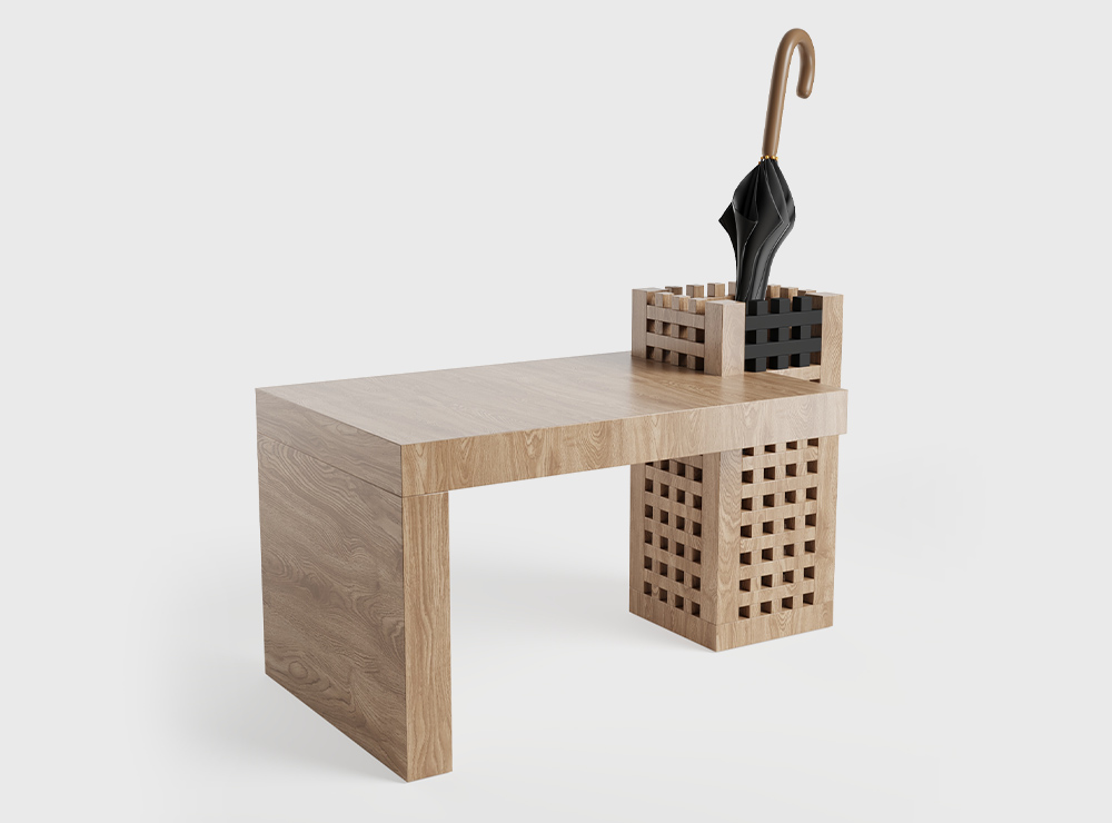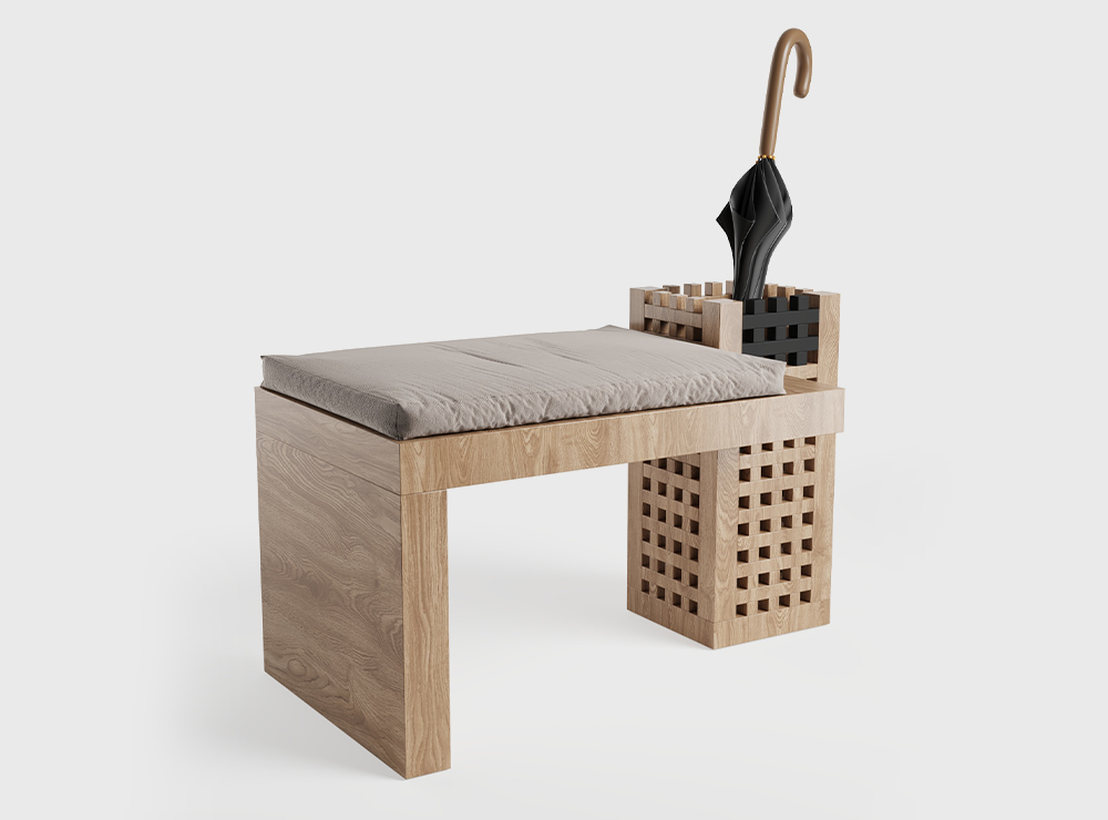 A multifunctional object: a bench with a holder for umbrellas or canes in the hallway, a bedside console in the bedroom or a stand for flowers or ikebana - Cell Bench complements the space, preserving its harmony and rhythm.