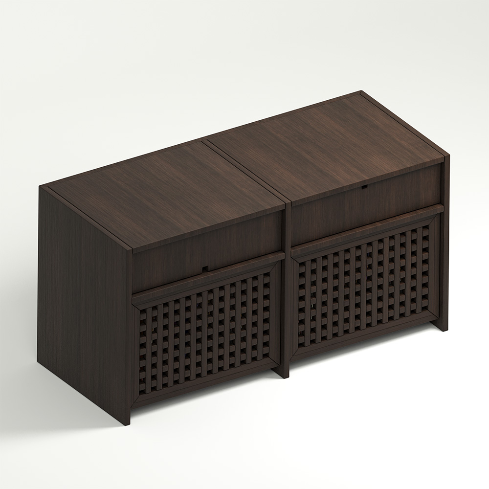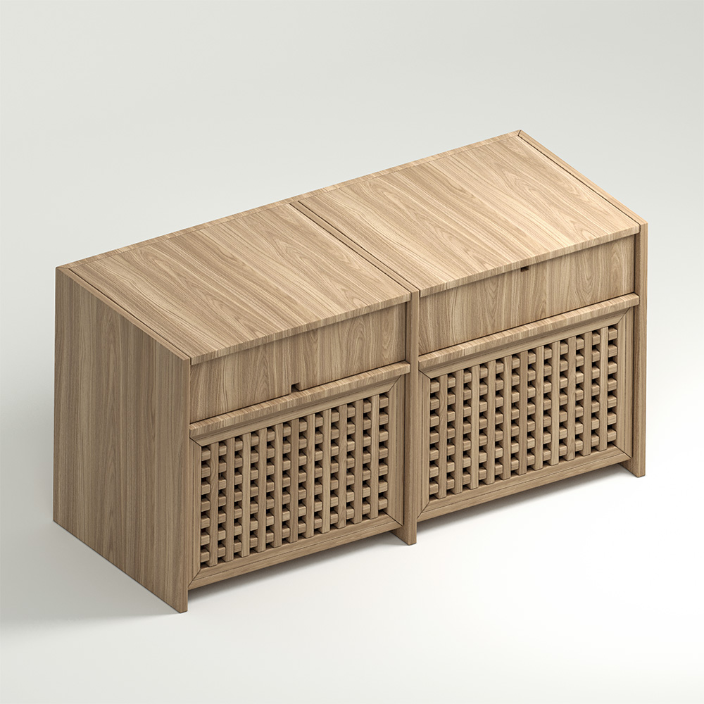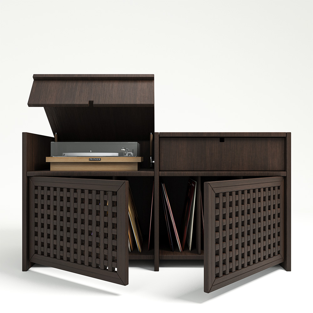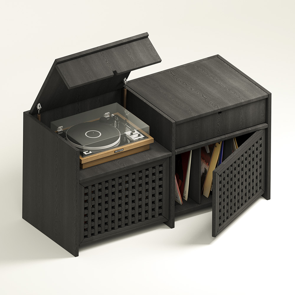 For connoisseurs of classics and style, we have created an extraordinary interior unit – the Touch vinyl storage cabinet, elegantly complementing the collection of wall panels and furniture in the Japanese-style Cell. Touch is a retro melody that will appeal to fans of stylish and functional items. With it, your vinyl record collection will have an exquisite hiding place, and your record player will conveniently fit into the concealed shelf. Wooden dresser for vinyl Touch will protect your musical treasures from dust, dirt and sunlight.