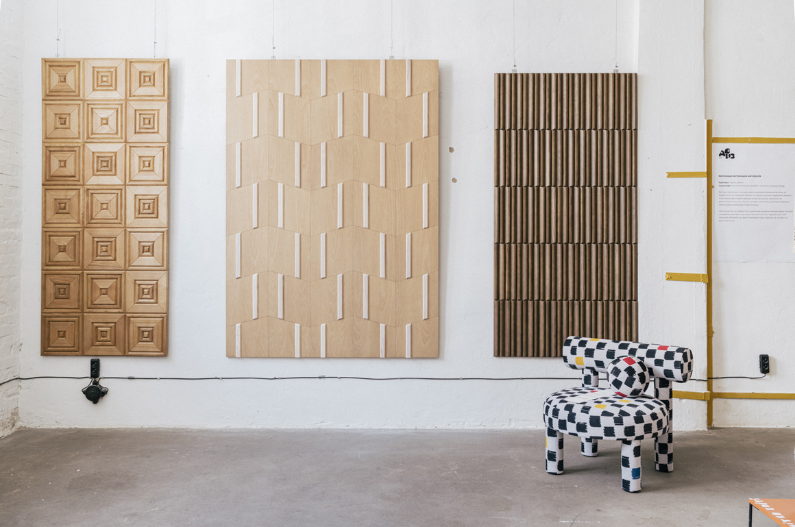 The second location with an industrial design exhibition opened its doors in the KultMotiv space curated by Kateryna Sokolova, where one could get acquainted with unique furniture products by Ukrainian manufacturers and designers.