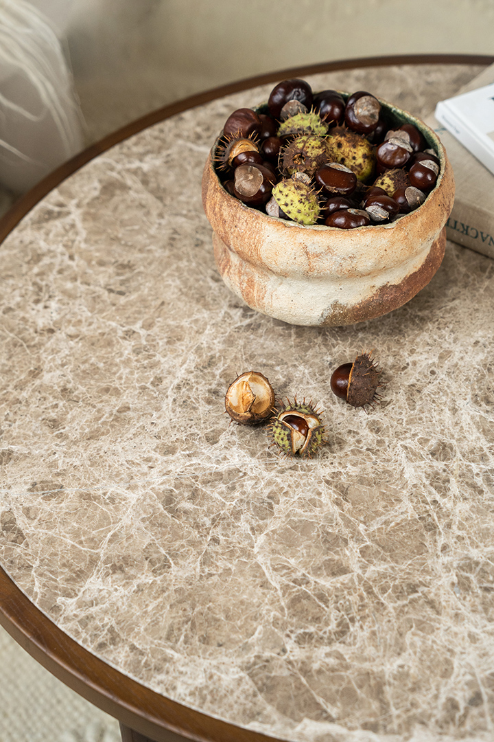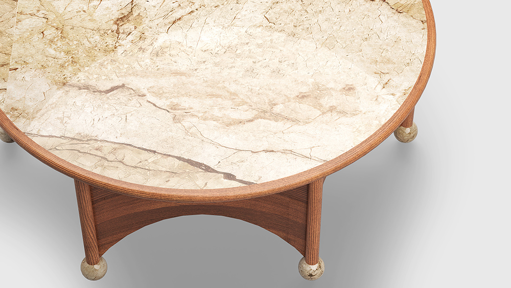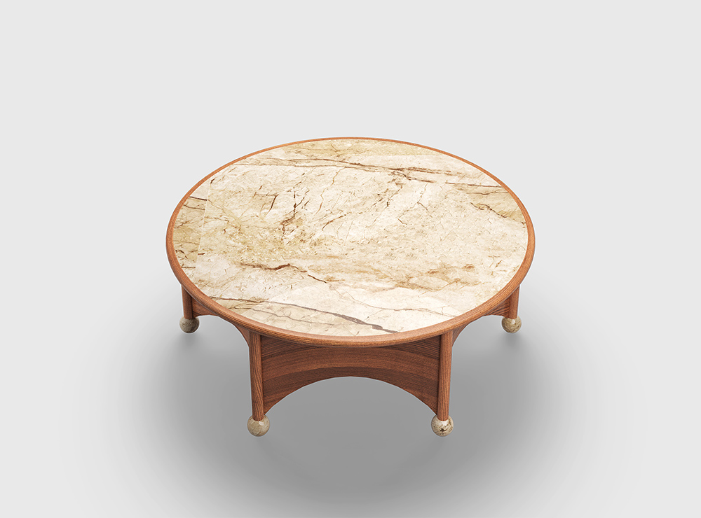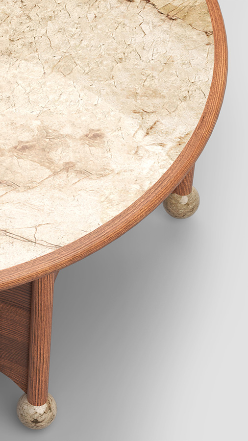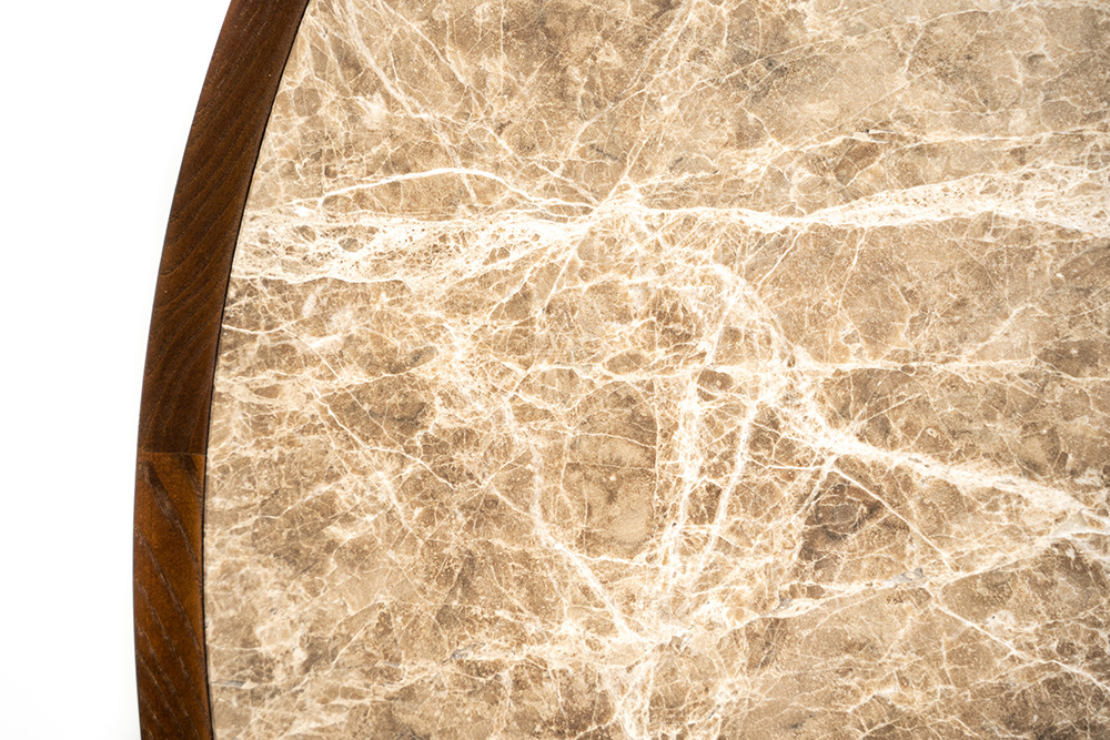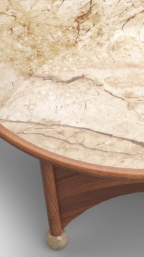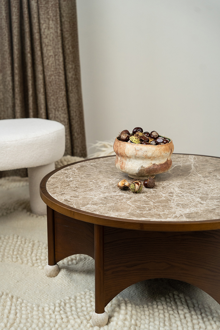 "The Noble table was created specifically for the Mid-Century Modern collection. It maintains its classic tone but has a gothic accent. We wanted to create large-diameter coffee tables, so we developed two versions: 110 cm in diameter for larger spaces and 80 cm for smaller ones." - Yana Molodykh